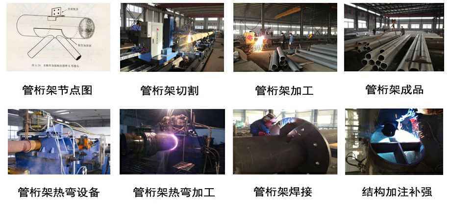 由于管桁架结构杆件端头断面形状十分复杂,因此须由专用机械进行自动切割,从而保证了构件的加工质量。对于有弧度要求的构件,一般采用专用自动设备进行热弯加工,其弧度、曲率等技术指标均能获得高度保证。同时,在防腐蚀功能上,由于管桁架结构的节点均采用全封闭式,也弥补了螺栓球结构节点封闭不严而造成内部腐蚀的通病和弊端。